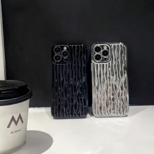 · [Fashion Style]: Unique 3D water ripple wavy designed surface, bling glitter with electroplated chrome glossy painting, it makes the case super sparkle & shiny under light. Eye-catching for fashionable people, and simple silver color are easy to go with any outfit.