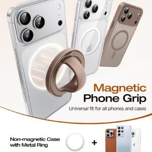 Be the first to review “Magnetic Phone Grip, 360° Rotation & 180° Flip Universal Phone Ring Stand, Silicone Phone Ring Holder for Back of Phone for iPhone 17/16/15/14/13/12 Pro Max/Plus, Brown” Cancel reply