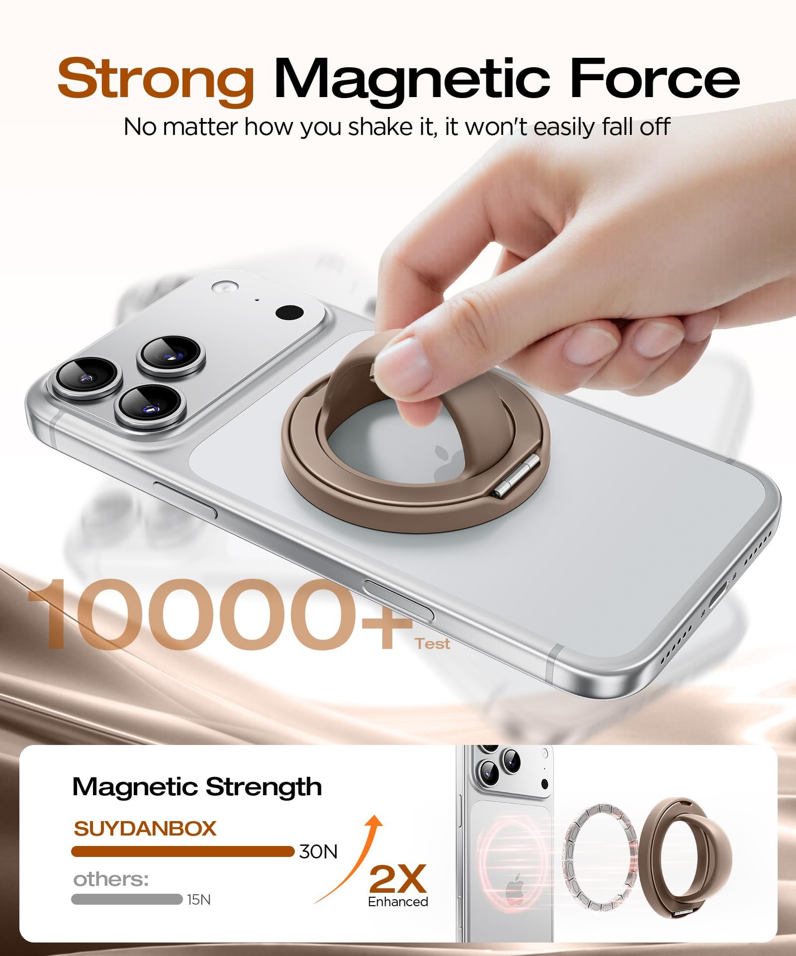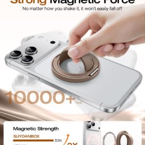 Brand:SuydanBox Color:Brown Compatible Devices:Smartphones Material:Silicone Package Dimensions:3.07 x 3.07 x 0.79 inches Item Weight:1.76 ounces ASIN:B0FSKTDXWB Date First Available:September 25, 2025 Manufacturer:SuydanBox · [Compatibility] Allowing quick installation and a strong magnetic grip on any magnetic-enabled phone or magnetic phone case. It is compatible with iPhone 17/16/15/14/13/12/11 series · [One-hand Grip] Designed with a simple and flexible grip stand, it makes one-handed use a breeze, preventing slips and drops · [360° Rotation & 90° Flip] Suydanbox phone holder is 360° rotatable and 180° foldable, suitable for getting the ideal viewing angle in videos, and selfies on various occasions · [Strong Magnetism] Don’t worry about your phone falling or dropping . Suydanbox super-strong built-in magnets, provide strong magnetic attraction to prevent your phone from falling · [Pocket-Ready] Crafted from lightweight, soft silicone, effortlessly slip this compact phone handle grip holder into your pocket when not in use